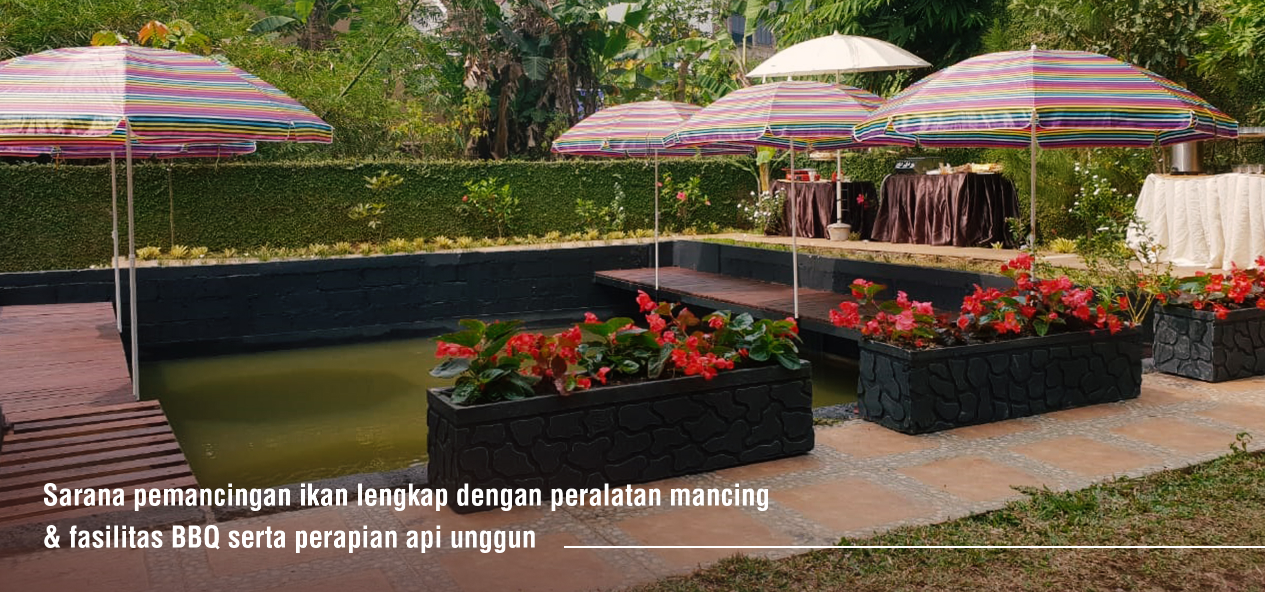 Villa Melati Garden menyediakan sarana olahraga yang bisa dilakukan bersama keluarga seperti kolam pemancingan ikan